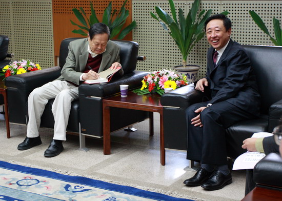 何岩与杨振宁亲切交谈
