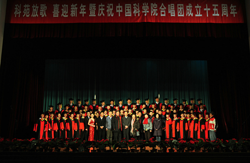 由院文联主办、院合唱团承办、院老科学家合唱团、院老科技工作者合唱团和中科院大学博士合唱团协办的“科苑放歌——喜迎新年暨庆祝中国科学院合唱团成立15周年合唱音乐会”,于12月22日下午在中国科学院大学(玉泉路校区)礼堂隆重举行。院文联主席郭曰方、院科学传播局综合处处长徐雁龙同志、北京分院宣教处韩博同志以及北京合唱协会杨幼昆副理事长和北京合唱协会副秘书长杨婕应邀出席了本次合唱音乐会,中国合唱协会专门为本次音乐会发来贺信。