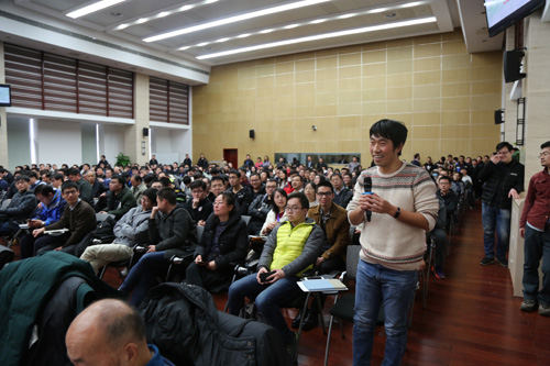 在随后的提问环节,张杰与现场观众进行了交流互动。讲座后,作为物理所第一届学生会主席,张杰接受了物理所2018届学生会主席赠与的物理所学生会年鉴并与大家合影留念。