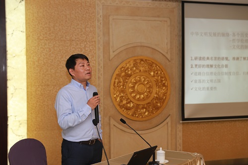 张鸿翔以《习近平用典》为题,以中华文明发展脉络为切入点,从修身、为学、官德三大方面,对习近平总书记著作、重要讲话和文章引用典故进行追根溯源,对其现实意义进行解读,帮助大家深入学习习近平总书记的重要讲话精神,准确理解总书记的思想精髓。