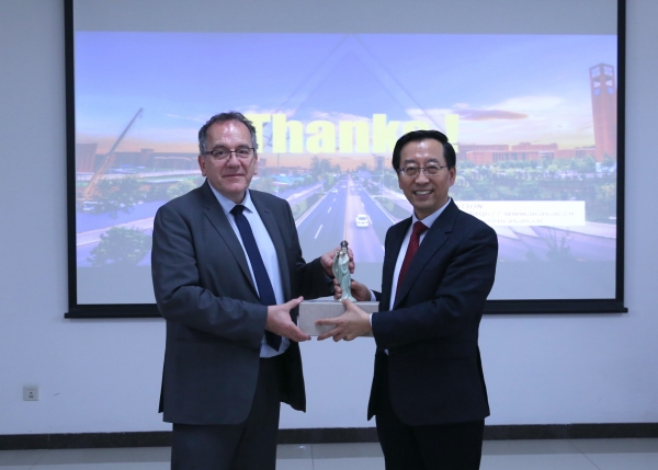 Jean Chambaz校长感谢国科大的接待,表示国科大是其就任索邦大学校长以来出国访问的第一所大学。他说,索邦大学和国科大有很多相同点,如明确的战略发展目标、浓厚的科研氛围、国际合作伙伴计划、悠久的历史传承和年轻的建校历史等。Jean Chambaz希望索邦大学能够和国科大在双方感兴趣的学科领域开展学术交流、师生互访和联合培养研究生等项目。