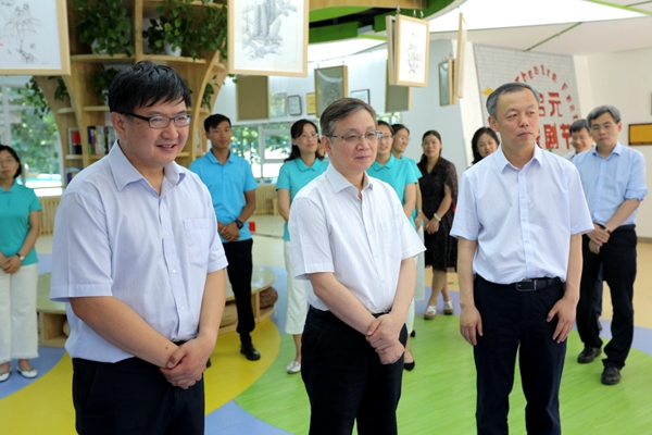 在中科启元学校、院附属实验学校,中科院第五幼儿园,侯建国认真听取了师资队伍建设、特色课程设置、教学环境创设及教育教学成果等方面的汇报,对“一园两校”积极依托我院优质科教资源、实现快速良性发展表示赞赏。他十分关心孩子们的综合素质培养,特别叮嘱要注重“快乐学习、健康成长”,培养全面发展的好学生。