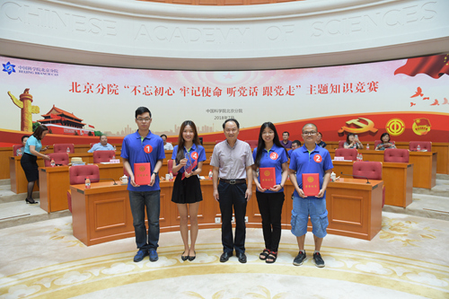 为深入学习贯彻习近平新时代中国特色社会主义思想和党的十九大精神,热烈庆祝中国共产党建党九十七周年,7月6日,北京分院在中科院学术会堂举办“不忘初心 牢记使命 听党话 跟党走”主题知识竞赛活动。北京分院分党组书记、副院长、京区事业单位党委书记马扬,北京分院副院长、京区事业单位党委副书记、工会主席李静,电工所党委书记张福宽、动物所党委书记聂常虹等京区事业单位工会领导出席活动。