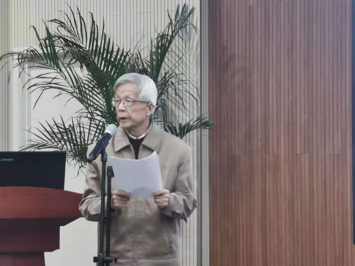 颜基义教授现场朗诵自创诗歌,叙述郭永怀先生对“两弹一星”事业、中国力学事业、以及人才培养等方面的巨大贡献,表达无限怀念。