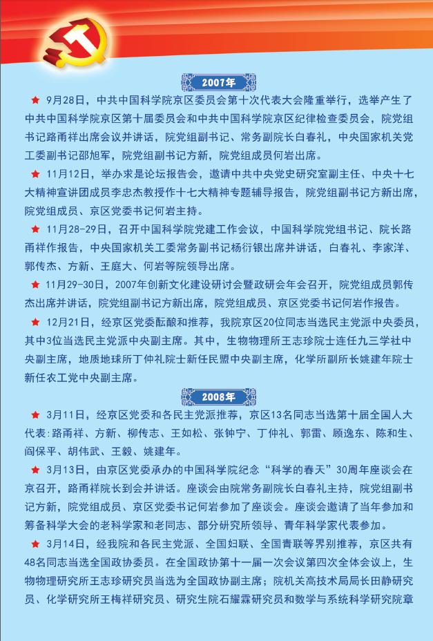 中国共产党中国科学院京区第十届委员会重要工作回眸