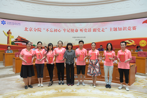 为深入学习贯彻习近平新时代中国特色社会主义思想和党的十九大精神,热烈庆祝中国共产党建党九十七周年,7月6日,北京分院在中科院学术会堂举办“不忘初心 牢记使命 听党话 跟党走”主题知识竞赛活动。北京分院分党组书记、副院长、京区事业单位党委书记马扬,北京分院副院长、京区事业单位党委副书记、工会主席李静,电工所党委书记张福宽、动物所党委书记聂常虹等京区事业单位工会领导出席活动。